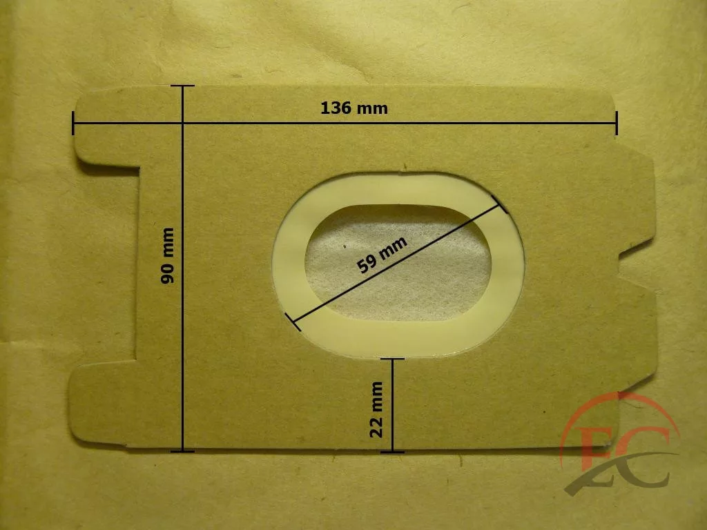 Lyuk átmérő: 45mm Lyuk távolság: 22mm Magasság: 90mm Szélesség: 136mm Zsák hosszúság: 415mm Zsák szélesség: 155mm