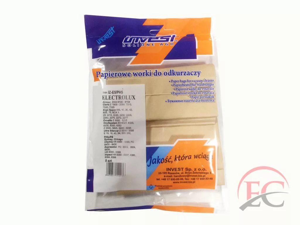 IZ-E5/PH5 INVEST ELECTROLUX / AEG / PHILIPS S-BAG KOMPATIBILIS PAPÍR PORZSÁK (5DB/CSOMAG)