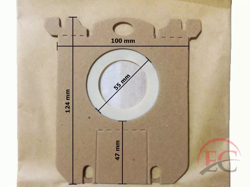 Lyuk átmérő: 55mm Lyuk távolság: 47mm Magasság: 124mm Szélesség: 100mm Zsák hosszúság: 255mm Zsák szélesség: 160mm