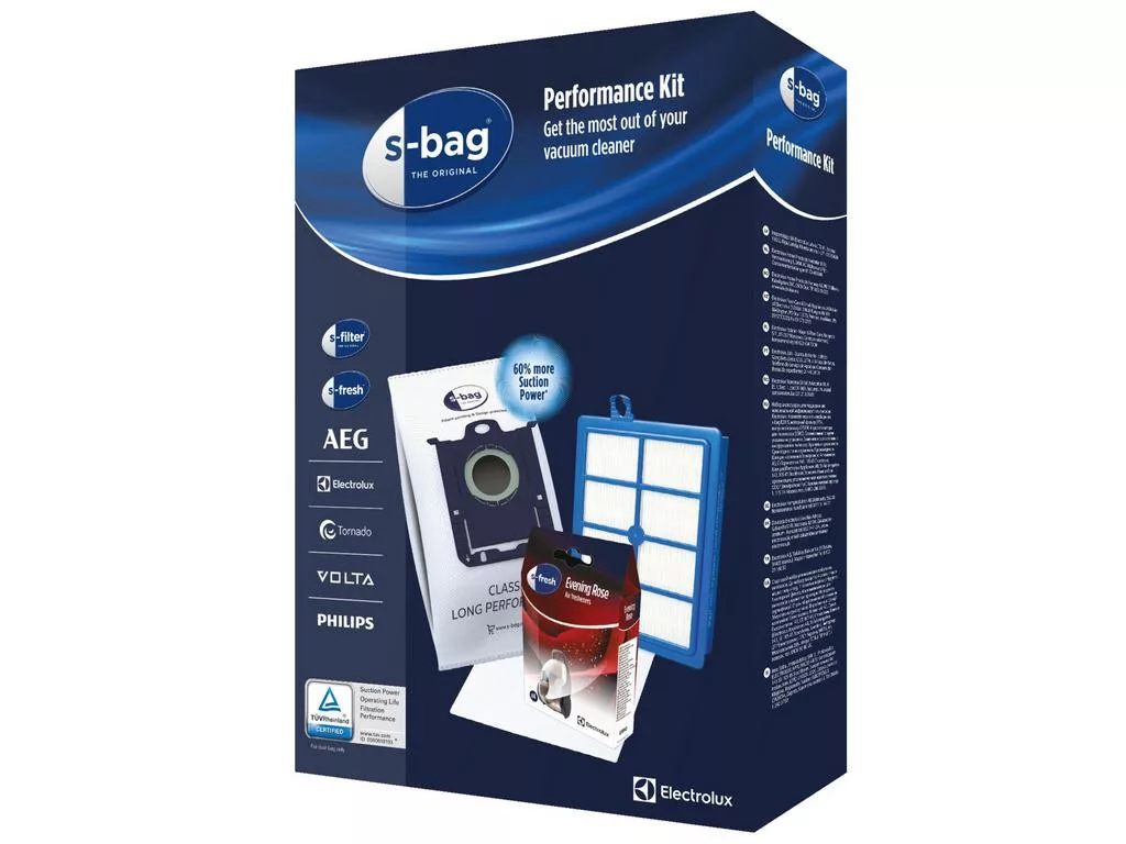 A kezdő készletben benne van minden, amire szüksége van porszívója karbantartásához (porzsák, szűrő, illatosító)Az s-bag® Classic Long Performance porzsákok 50% -kal hosszabb ideig használhatók, mint a hagyományos modellek. A porzsák hozzájárul az optimális légáramláshoz, és állandó szívóerőhöz. Porszívója akkor is hatékonyan szedi össze a szennyeződéseket, amikor a porzsák megtelik.A tiszta szűrő nélkülözhetetlen a hatékony takarításhoz. A szűrő befolyásolja a porszívó szívóerejét, és gondoskodik róla, hogy a készülékből távozó levegő valóban tiszta legyen. Ez a Hygiene szűrő megfogja a legkisebb polleneket, penész spórákat, atkákat és egyéb allergéneket, így gondoskodik az egészséges otthoni környezetről.Az univerzális motorszűrő megvédi a porszívója motorját a portartályban lévő porszemcséktől. Az optimális teljesítmény fenntartása érdekében ezt a szűrőt minden negyedik porzsákcserével egy időben ki kell cserélni.Az esti rózsa illatú s-fresh ™ illatgyöngyök megtöltik otthonát egy gyönyörű rózsakert illatával, amelyek a forró nyári napokat idézik. Csak nyissa ki a tasakot, szórja ki a földre az illatgyöngyöket, majd porszívózza fel. Vagy bele is szórhatja közvetlenül a porzsákba, mikor éppen cseréli.A csomag tartalma:4 db s-bag® Classic Long Performance (hosszú élettartamú) porzsák (1 csomag)1 db Hygiene szűrő1 db univerzális motorszűrő4 db s-fresh® esti rózsa illatú illatgyöngy (1 csomag)A porzsákok az alábbi porszívó családokhoz használhatók: UltraSilencer, UltraOne, Classic Silence, Ergospace, SilentPerformer, Power Force, Pure D9