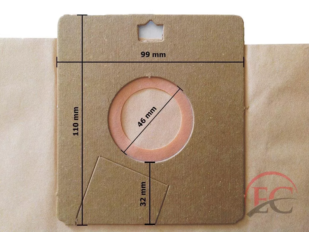 Lyuk átmérő: 46mm Lyuk távolság: 32mm Magasság: 110mm Szélesség: 99mm Zsák hosszúság: 190mm Zsák magasság: 120mm Zsák szélesség: 180mm