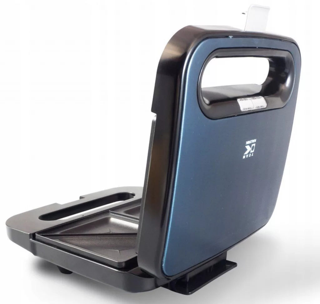 750 W teljesítmény,könnyen tisztítható tapadásmentes bevonatú sütőlapok, működés és készenlét jelző fény, rozsdamentes midnight blue kék külső borítás, egyidejűleg 4 db háromszög alakú melegszendvics készítésére alkalmas.