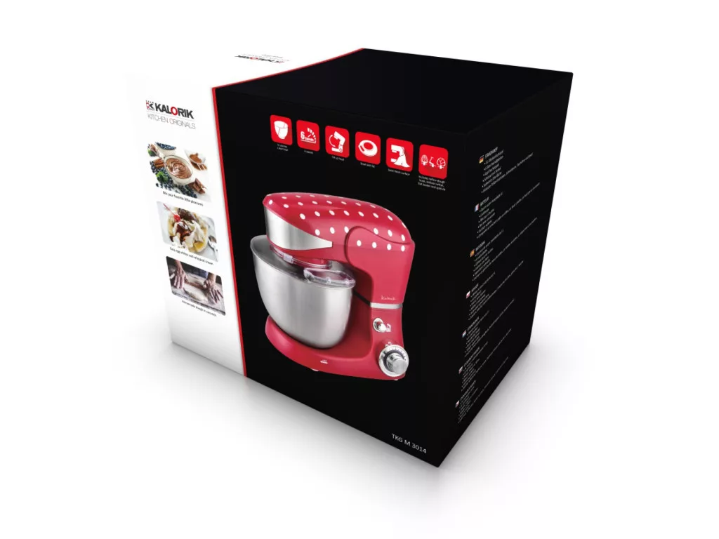 Teljesítmény 1000W-Kapacitás 5L rozsdamentes acél keverőtál-6 sebesség fokozat-Inox fokozatszábályzó kék háttérvilágítással- Felhajtható mixer kar a keverő tál illetve a kiegészítők könnyebb cseréjéhez-Rozsdamentes acél habverő, keverő és dagasztó szár- Átlátszó fedő betöltő nyílással az alapanyagok folyamatos adagolásához-Vákumos csúszásmentes talpazat-Bolygóirányú mozgás a mixelés közben a teljes mixer tál szélességében