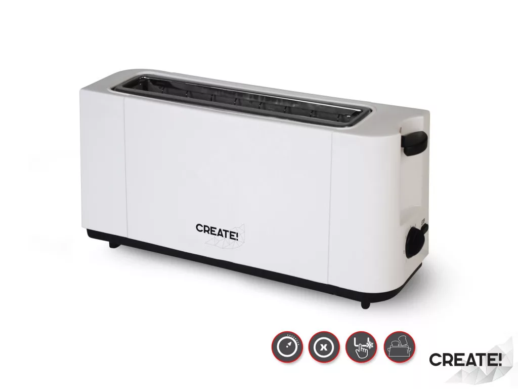 900W teljesítmény-Hosszú szeletes kivitel-Morzsagyüjtő tálca-Piritás szabályozás-Kiolvasztás funkció-Stop gomb