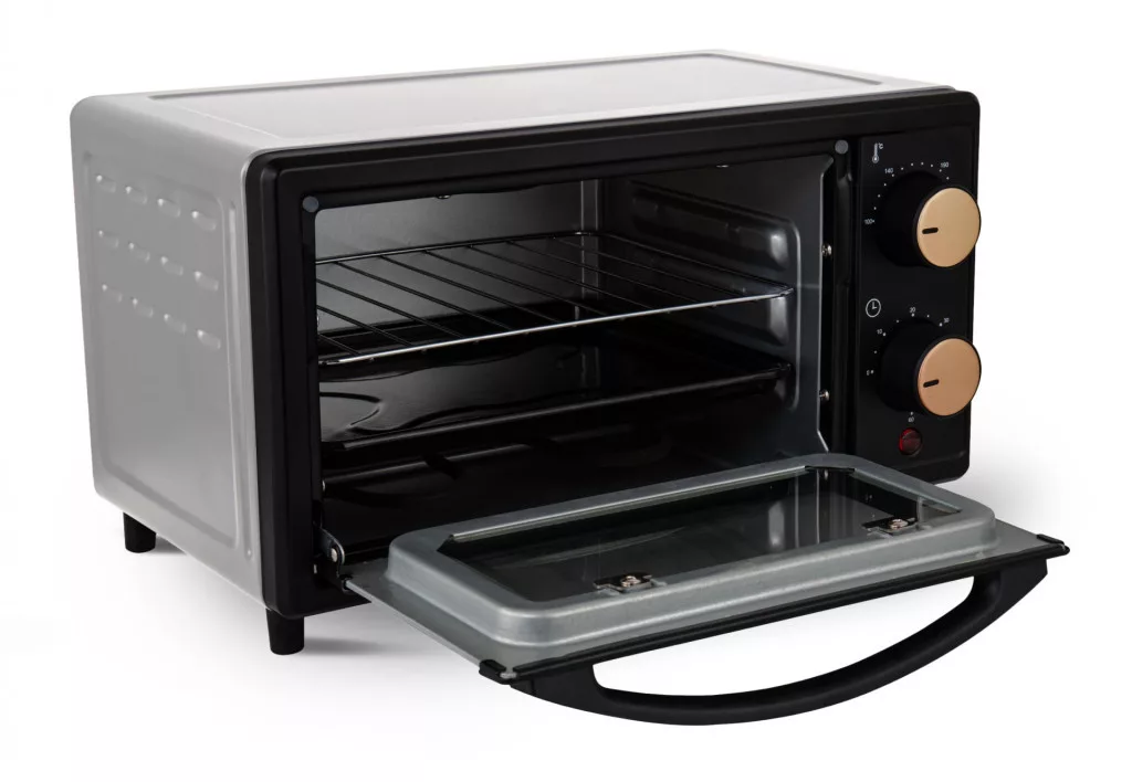Mini grill Kapacitás 9,7 L Belső sütőkamra mérete : 262x205x180mm Állítható hőmérséklet 100-230°C Energiatakarékos infra technológia (25%-al kevesebb energia felhasználás) Dupla falu hőálló üveg 60 perces időzítő Automatikus kikapcsolás hangjelzéssel Működés jelző fény Rozsdamentes acél fogantyú Kiegészítők a csomagban : sütő tálca , grill rács Teljesítmény : 900W