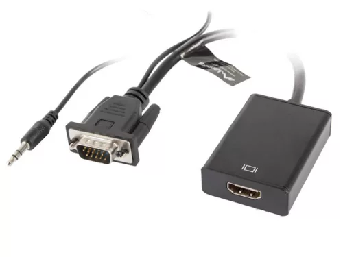 LANBERG VGA(M)+MINIJACK 3.5MM(M)->HDMI(F) ADAPTER KÁBEL 20CM FEKETE