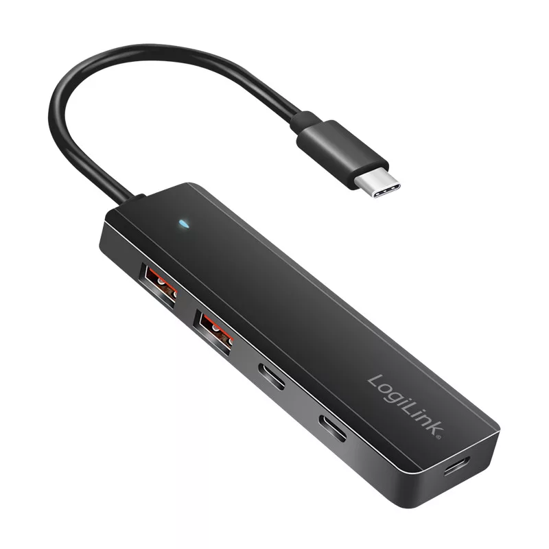 Logilink Ultravékony USB-C hub, 4 port, 2x USB-A, 2x USB-C, fekete (UA0412)