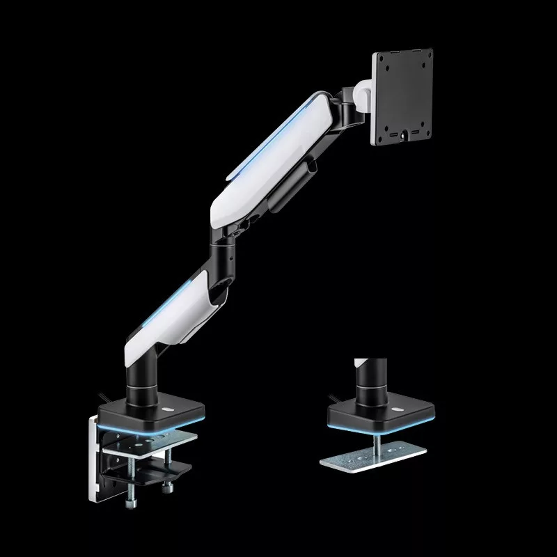 Alkalmas 17-49"-os monitorokhoz Monitorok száma: 1 Rögzítési mód: Asztali bilincs vagy gyűrűs rögzítés Súly: 20 kg max. Maximális karhossz: 458 mm Döntés: -20 fok/+50 fok, forgatható: -90 fok/+ 90 fok-ban elforgatható: 360 fok-ban elforgatható előlap Méretek előlap SzxM.: 116x116 mm VESA-kompatibilitás: 75x75, 100x100 Nagy teherbírású és rugós lengőkarral rendelkezik az egyenletes mozgás érdekében Az optimalizált billenő szerkezet simább beállítást biztosít a nagy képernyőhöz Beépített fényhatás Kábelkezelés: Elegánsan elrejti a monitorhoz csatlakoztatott összes kábelt Szín: matt fekete és szürkés fehér