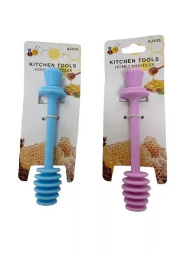 Rózsaszín vagy kék színű, műanyag mézcsurgató.
