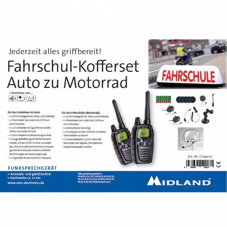 A Midland G7 Pro PMR adóvevő rádió 2db-os autós motoros oktató szett ideális választás azoknak, akik hatékony és megbízható kommunikációra vágynak motoros oktatási környezetben vagy autós kapcsolattartáshoz. A készlet két prémium minőségű rádiót és az oktatáshoz szükséges tartozékokat tartalmazza, amelyek megkönnyítik a folyamatos és tiszta kapcsolatot két jármű között.