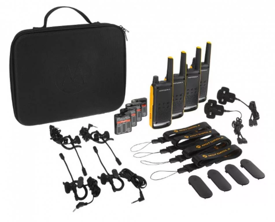 A Motorola TALKABOUT T82 EXTREME PMR adóvevő rádió Quad hatékony kommunikációs eszköz kültéri és beltéri használatra. 16 analóg csatornával és 121 szelektív hívókóddal kínál megbízható kapcsolatot engedély nélkül, az ingyenes PMR446 sávban.