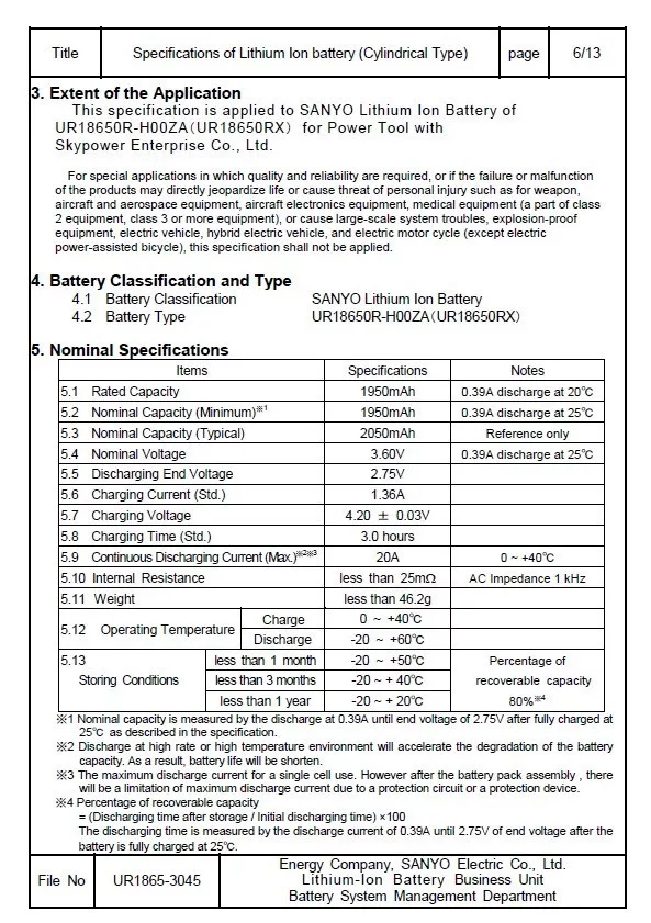 - 1950 mAh - 3,6 V li-ion 1,9A - 18650 ipari akkumulátor - Alkalmazás: elektromos szerszám, különbőző fény lámpa, led akkumulátor - Méret: 65 x 18,2 mm