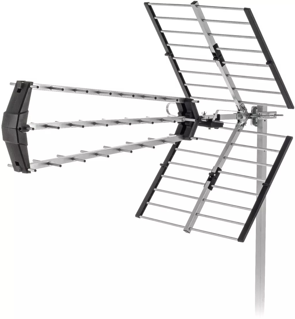 • DVB-T kültéri antenna • UHF470 - 862 MHz • Impedancia: 75 OHM • Csatorna: 21-69 • Erősítéssel: 25 dB • Ellenálló robusztus külső • Beépített szimmetrikus elem • Horizontális polarizáció • Elemek száma: 42 • Hatótávolság: 120 km • Alacsony jelszintű régiókban is ajánlott • Csatlakozás: F-csatlakozó
