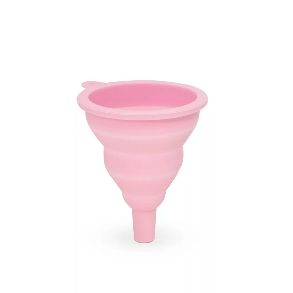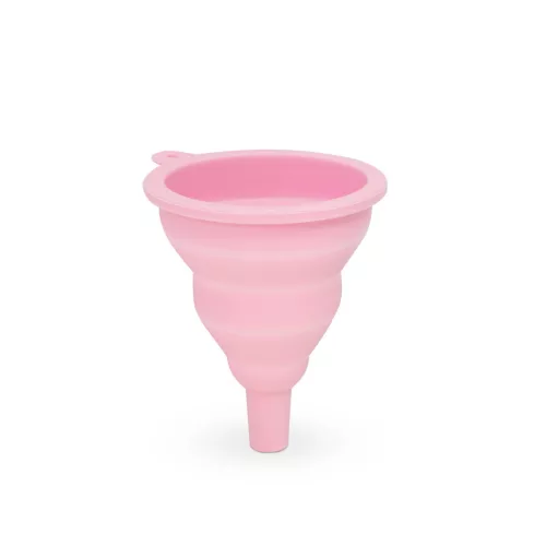 Háztartásban használatos szilikon tölcsér, amely összenyomható, így használaton kívül kevés helyet foglal. Nem benzinálló! Rózsaszín színben Anyaga: Szilikon Mérete: 10 x ø8 cm