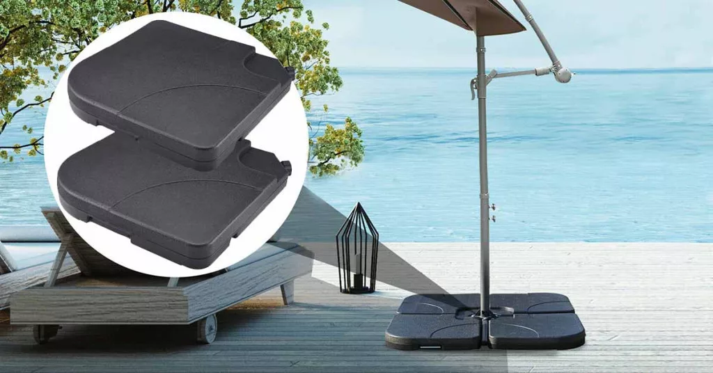 A könnyű műanyag szerkezet üresen egyszerűen hordozható és tárolható, de vízzel vagy homokkal feltöltve nagy stabilitást nyújt. A változtatható súlynak köszönhetően testre szabható, hogy az adott környezethez és ernyőtípushoz igazodjon.