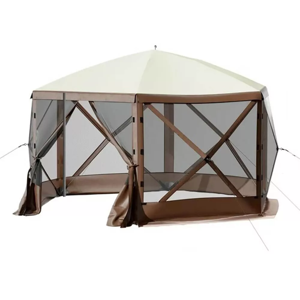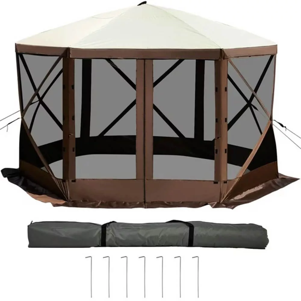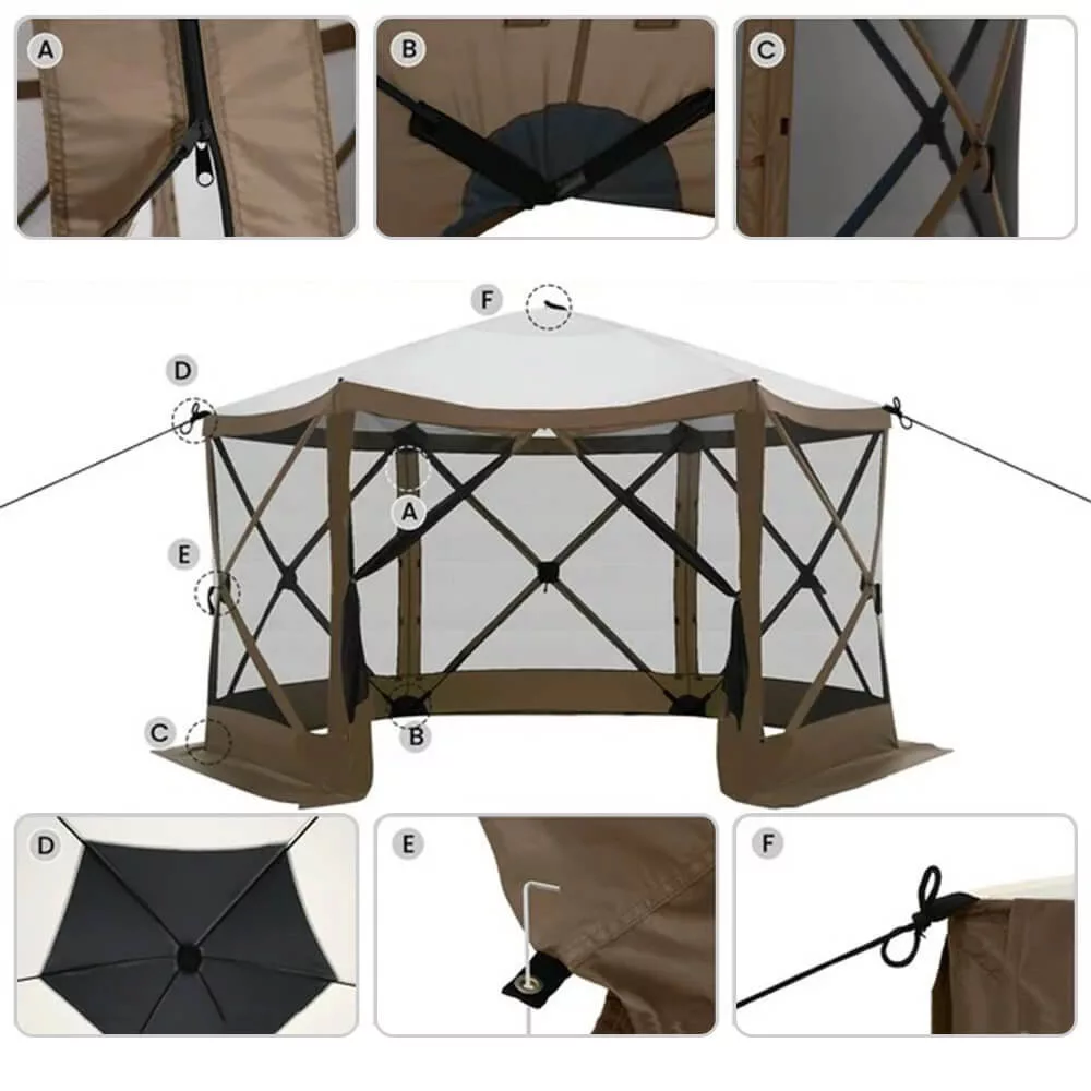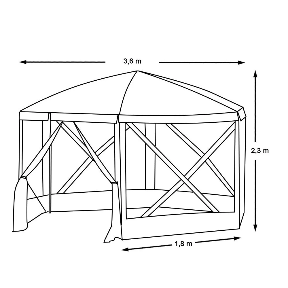 Ez a 8 személyes szabadtéri pavilon ideális választás kerti partikhoz vagy kempingezéshez. A szúnyoghálós falak és cipzáras ajtó védelmet nyújtanak az időjárás és rovarok ellen. Könnyen összeállítható, és hordtáskájának köszönhetően bárhová magaddal viheted. Tökéletes gazebo a természetbe.