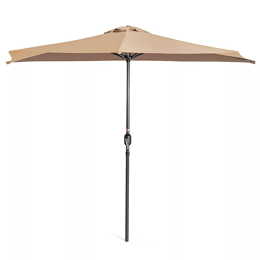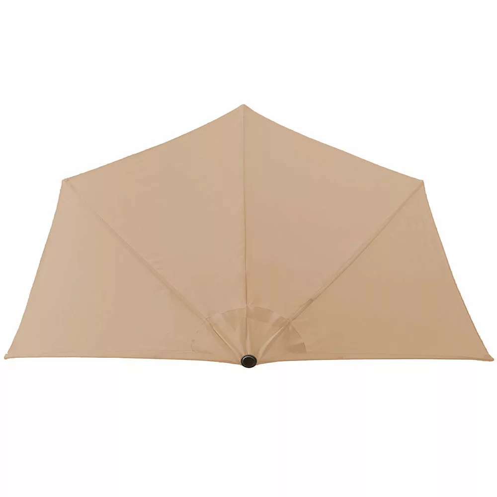 A 137 cm sugarú, 266 cm széles napernyő hatékonyan árnyékolja az erkélyed, miközben a félköríves forma révén helytakarékosan simul a fal mellé. Időtálló szerkezete otthoni, magánjellegű használatra készült, így ideális választás reggeli kávézásokhoz, délutáni olvasásokhoz vagy baráti beszélgetésekhez a balkonodon.