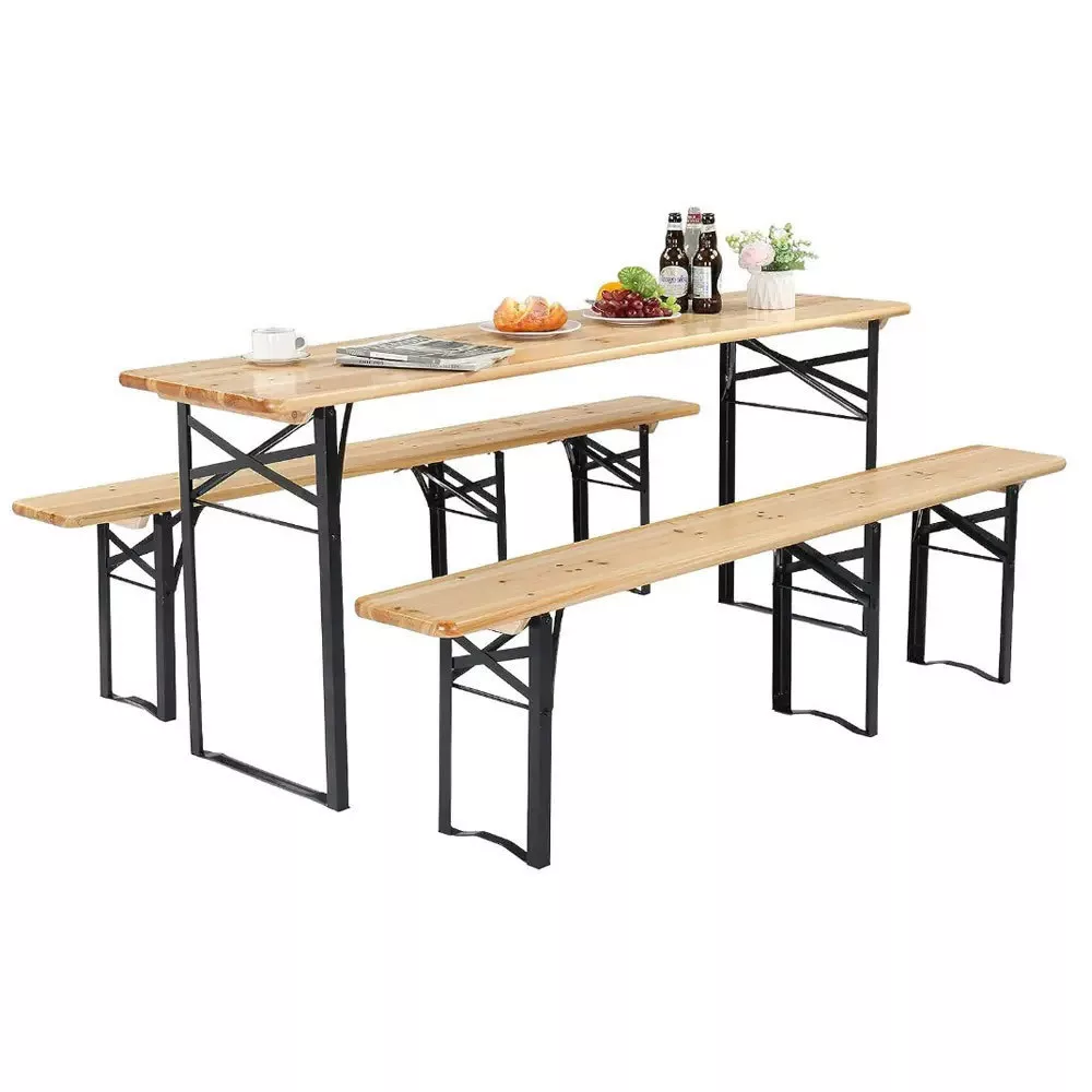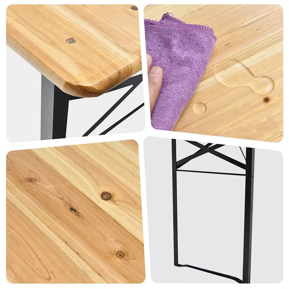 Hozd össze barátaidat és családodat ezzel a 3 részes fa sörpad szettel! Masszív fa felülete és strapabíró acélváza garantálja a hosszú élettartamot, miközben kényelmes helyet biztosít akár 6 fő számára. Könnyen összecsukható kialakítása praktikus szállítást és tárolást tesz lehetővé, így ideális választás kerti partikhoz, piknikekhez vagy bármilyen szabadtéri eseményhez.