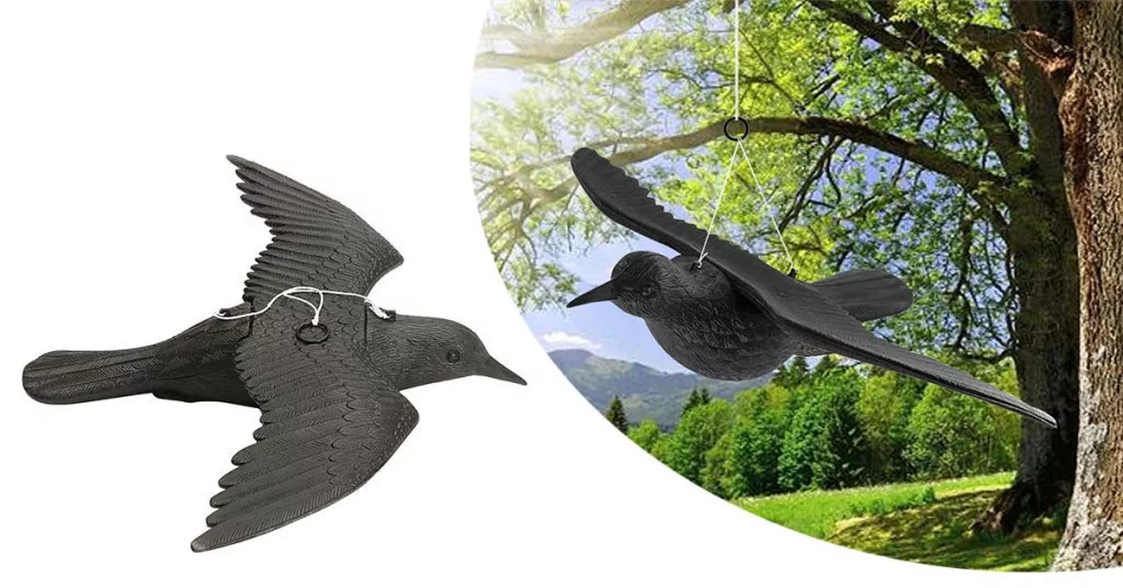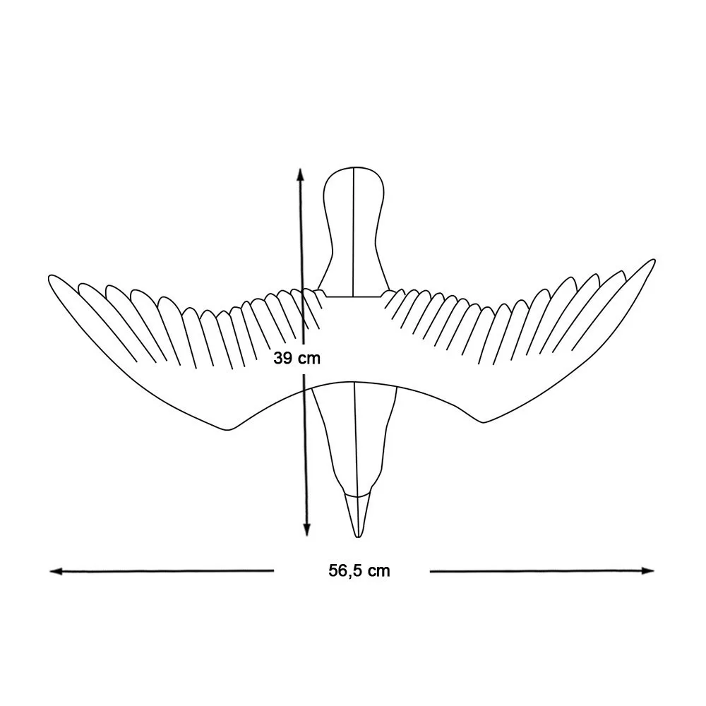 A felfüggeszthető madárijesztő hatékonyan segít távol tartani a nem kívánatos madarakat. Élethű ragadozó madár formája és szél által keltett mozgása fokozza a riasztó hatást – védi növényeidet, kerti bútoraidat és épületeid tisztaságát.