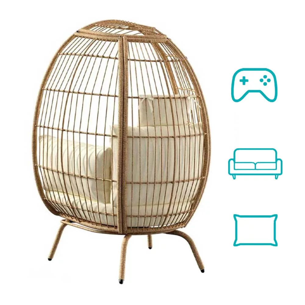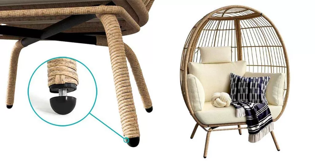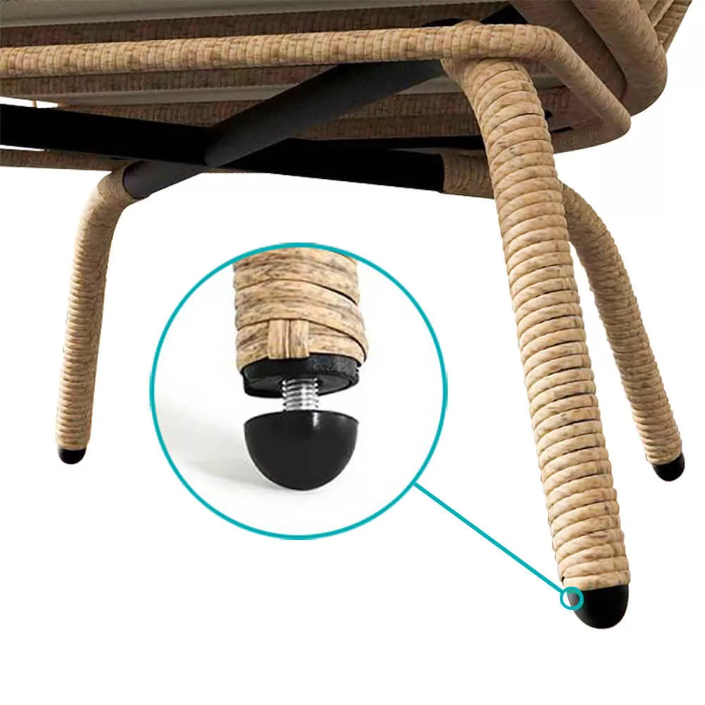 A szék váza erős fémből készült, amely akár 120 kg-ot is képes megtartani. A lábakon található csúszásgátló bevonat védi a padlózatot és biztosítja a stabilitást. A rattan burkolat tartós PE anyagból készült, amely ellenáll az időjárási viszontagságoknak is, így kültéren és beltéren egyaránt használható.
