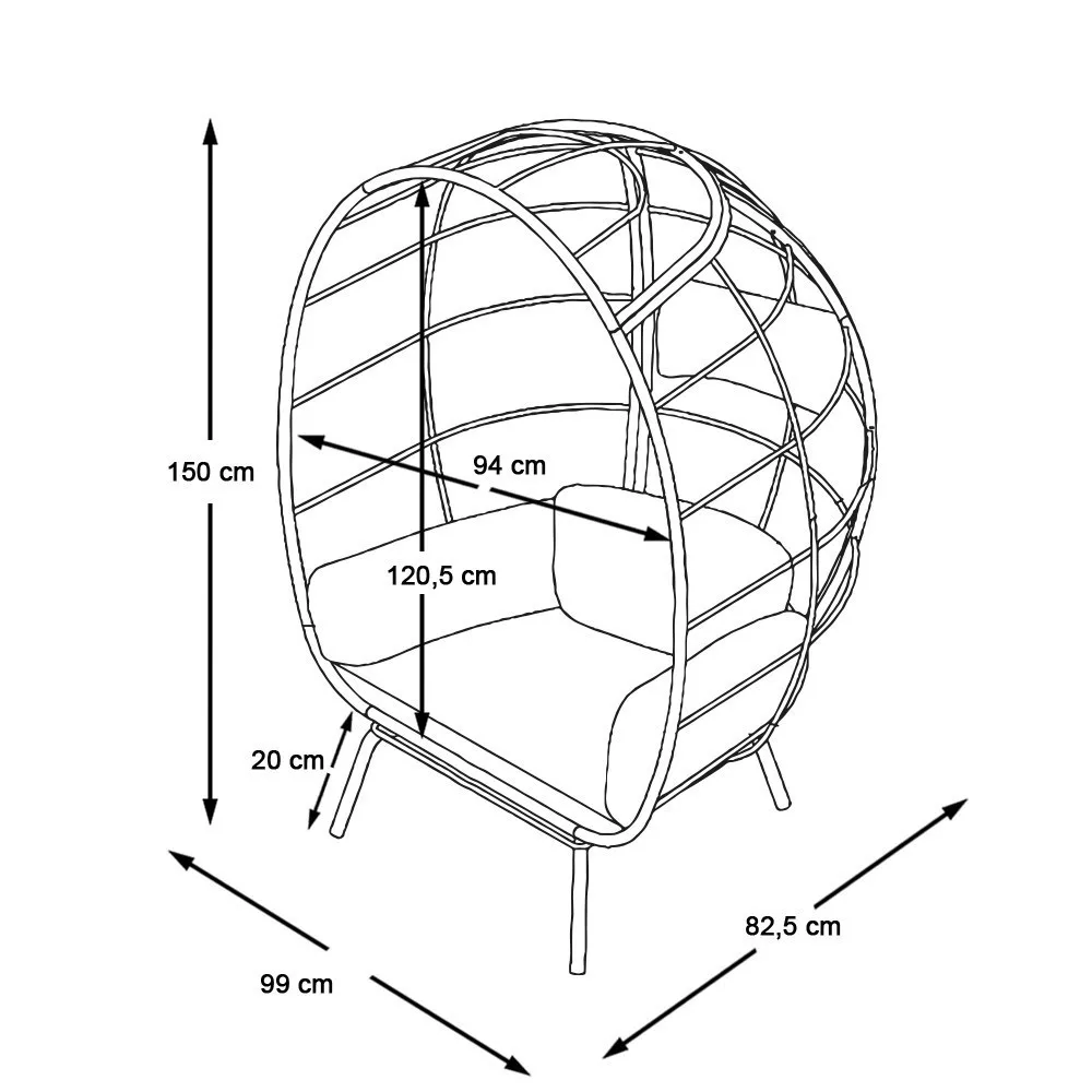Ez a fotel ideális pihenősarokként a nappaliban, de kiválóan alkalmas kültéri használatra is. Az időtálló anyagok és a könnyű összeszerelhetőség miatt praktikus és stílusos választás bármely térbe.