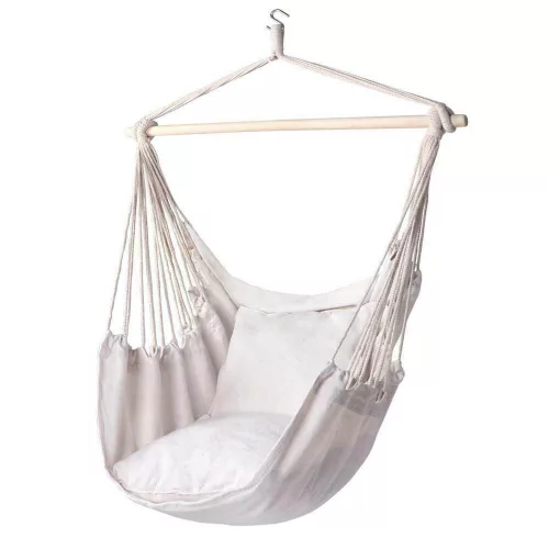 Ez a párnás függőszék ideális választás pihenéshez beltéren és a szabadban is. Merevítő rudának és erős vászon anyagának köszönhetően stabil és kényelmes, 120 kg-os teherbírással. Ülő- és hátpárnája extra kényelmet nyújt a pihenés perceiben.