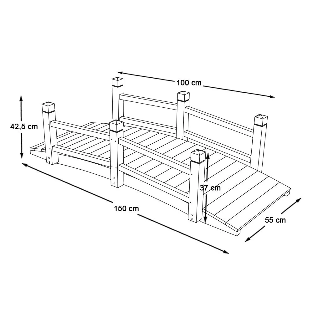 Legyen szó klasszikus, modern vagy rusztikus kertről, ez a fa híd minden stílushoz illik. Finoman ívelt kialakítása és visszafogott, elegáns formavilága kiemeli a kert szépségét, miközben funkcionális elemet ad hozzá. A csomagban minden szükséges elem megtalálható az egyszerű összeszereléshez.