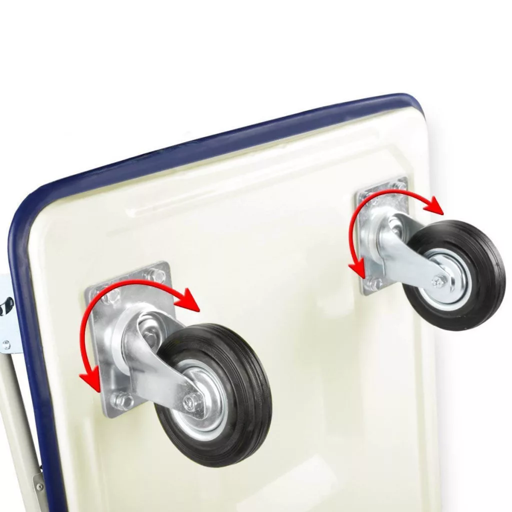 A húzható kézikocsi erős fém vázzal készült, így akár 150 kg-ot is biztonságosan mozgathatsz vele. Akár barkácsműhelyről, üzletről vagy ház körüli munkákról van szó, megbízható segítséget nyújt.