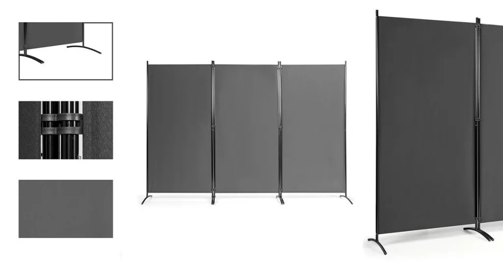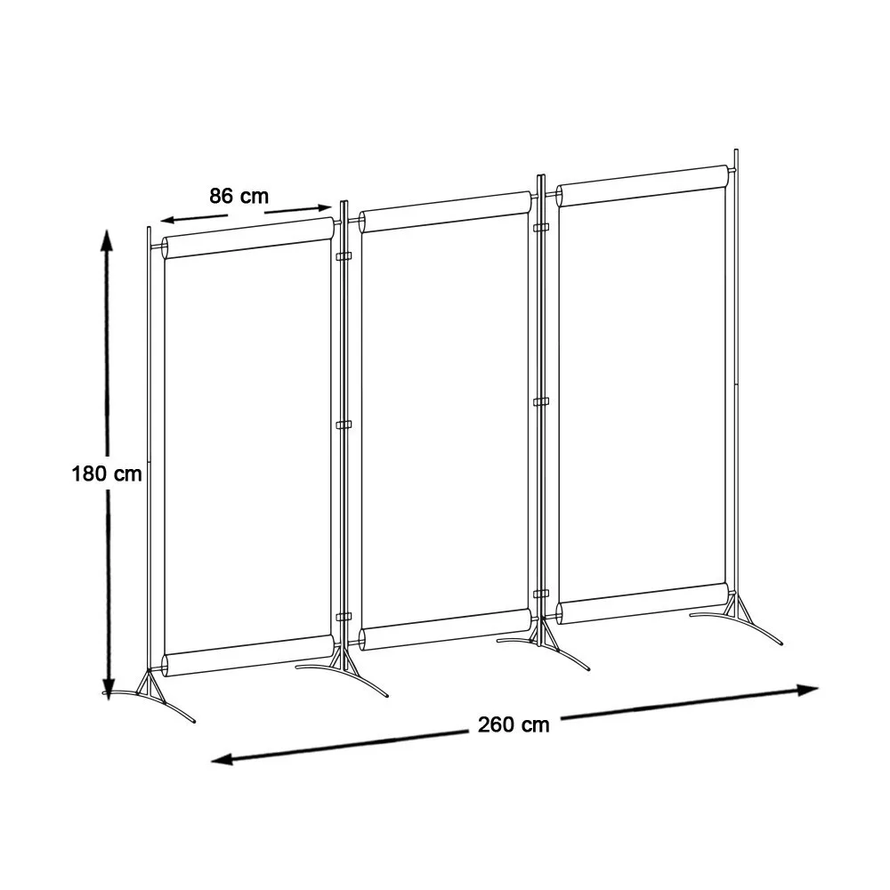 A stabil fém váz megbízható tartást biztosít, a három összekapcsolt panel pedig tetszőlegesen hajlítható a kívánt formára. A lábak szélessége és a panelek mérete ideális az átlátható, mégis elhatárolt terek létrehozásához.