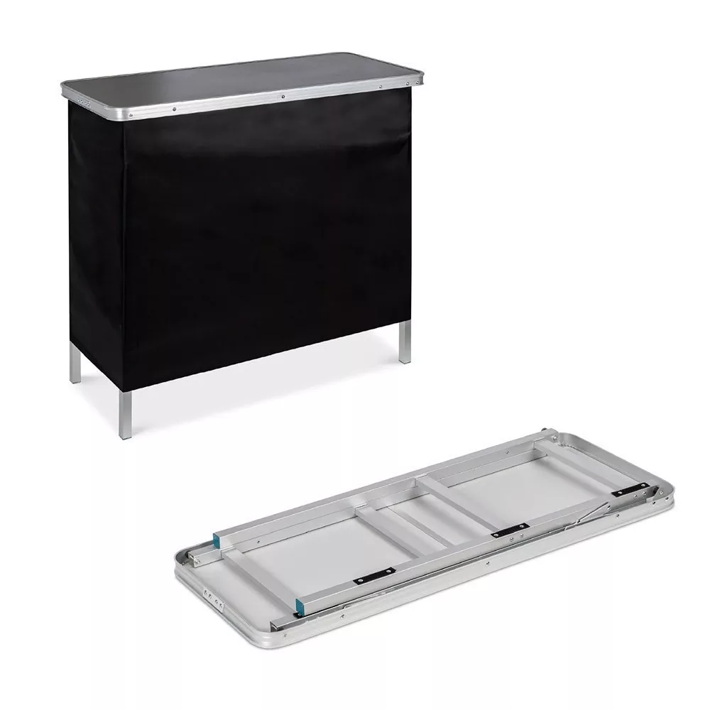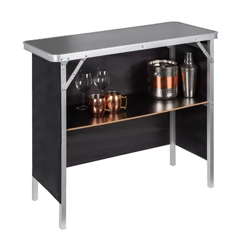 Vidd magaddal az igazi koktélbárok érzését és légy a kerti partik királya! Könnyen összecsukható és hordtáskájában magaddal viheted a barátaidhoz, nyaralásra vagy kempingezésre. Kül-és beltéri használatra egyaránt használható. Oldalsó takaró fala tépőzárral ellátott és levehető, így könnyen tisztítható és esztétikusan eltakarja az alsó polcon tárolt italokat és kiegészítőket. Maximális teherbírása 30 kg.