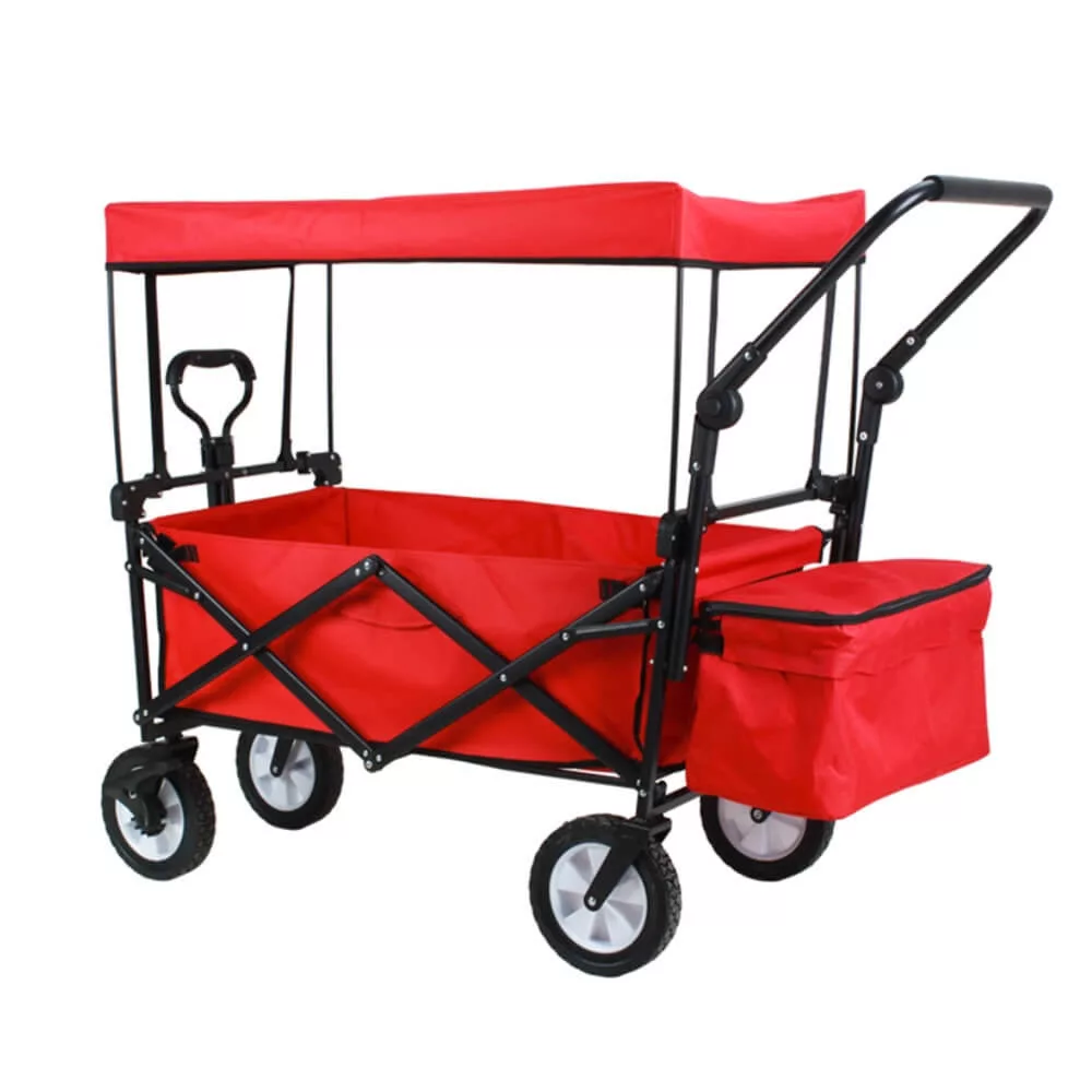 Az összecsukható, tetővel ellátott kézikocsi ideális társ kerti munkákhoz, kirándulásokhoz, strandoláshoz vagy akár horgászathoz. Erős, 100 kg teherbírású kialakításának és kényelmes hordozhatóságának köszönhetően szinte bármilyen feladatra alkalmas. Levehető tetője és tárolózsebei még praktikusabbá teszik, a masszív váz pedig egyszerűen összecsukható, így kis helyen is elfér.