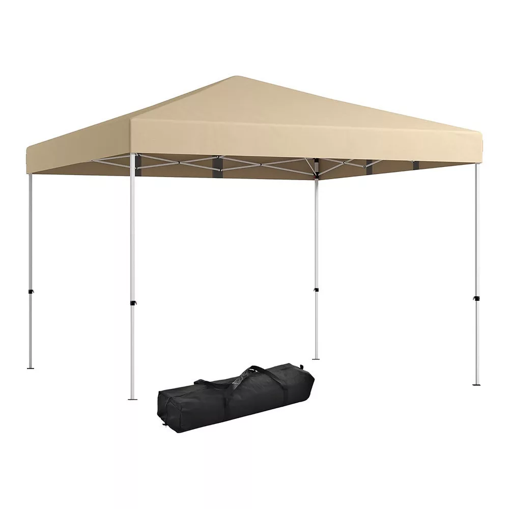 Ez a bézs színű, vízálló pavilon gyors megoldást kínál rendezvények, vásárok vagy kerti események árnyékolására. Könnyen felállítható, stabil szerkezetének köszönhetően biztonságos védelmet nyújt a nap vagy enyhébb szél ellen.