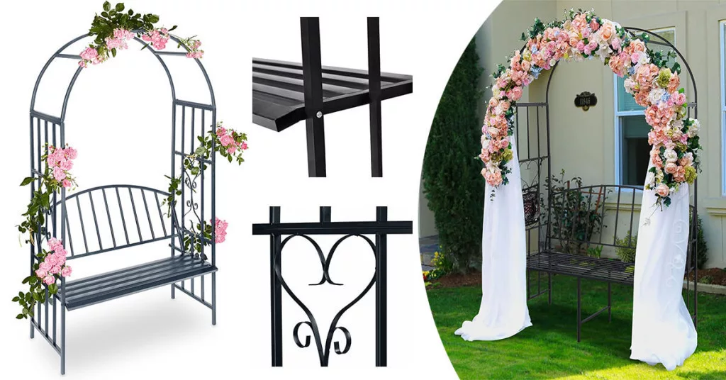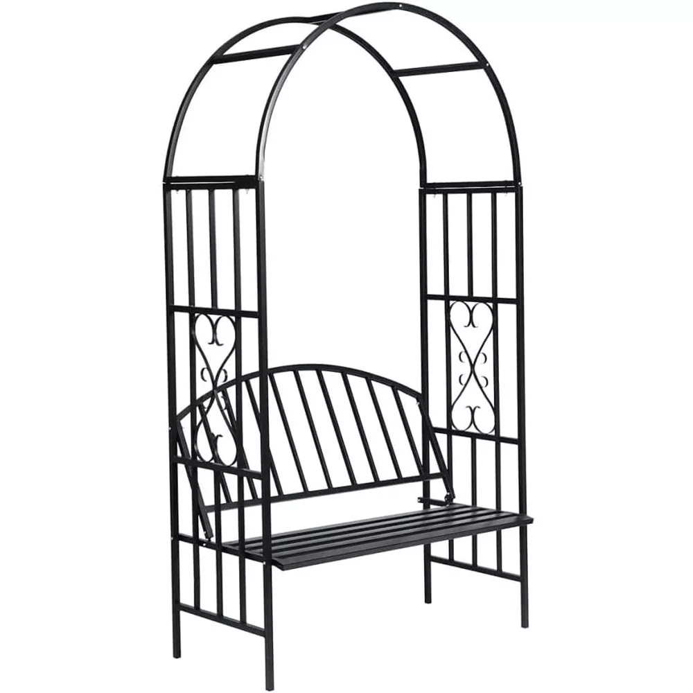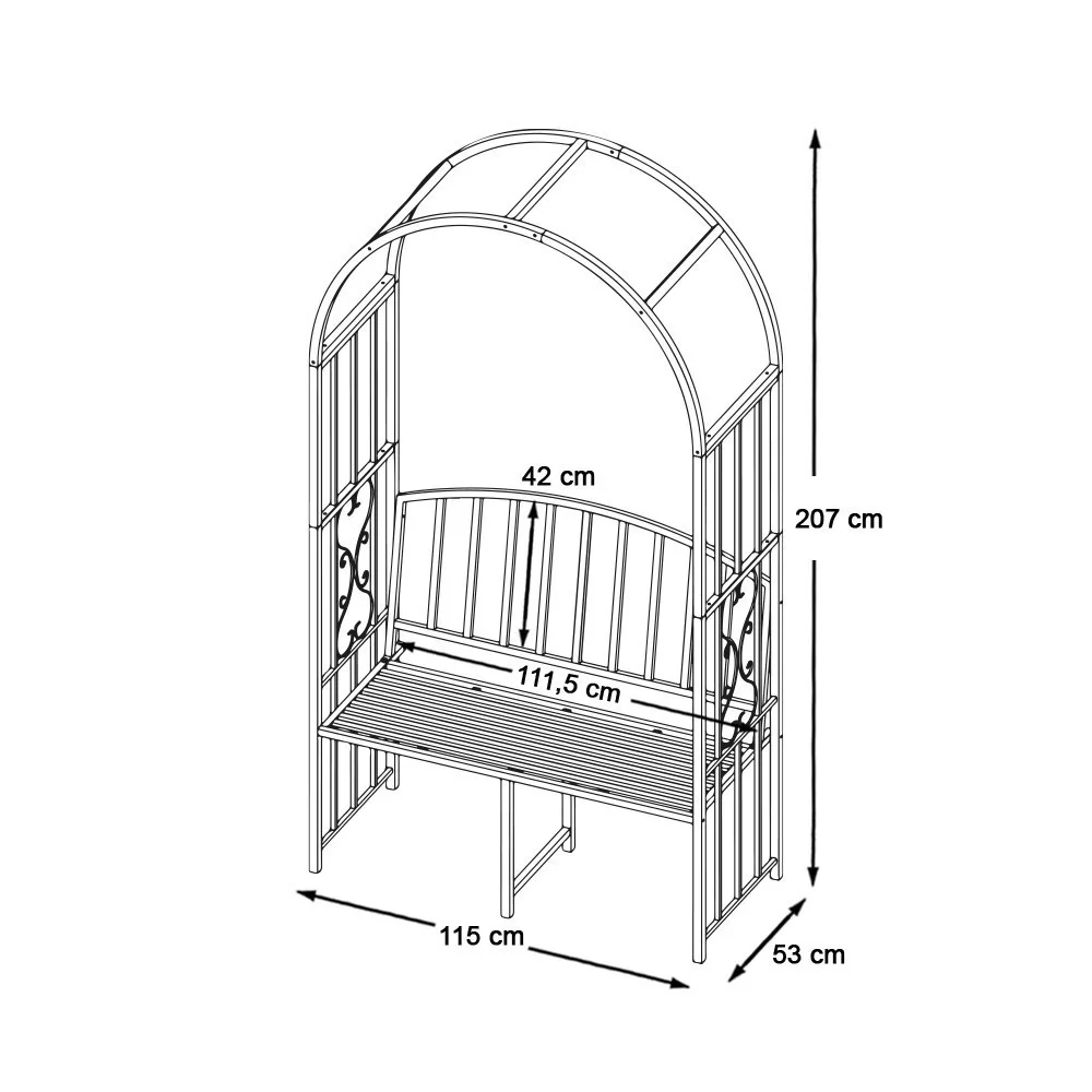 Ez a masszív fémvázas rózsalugas romantikus hangulatot teremt a kertedben. Virágokkal befuttatható, dekoratív íve szív alakú mintával készül, míg ülőrésze 150–200 kg-ig terhelhető, így akár pihenéshez, akár különleges eseményekhez is ideális választás.