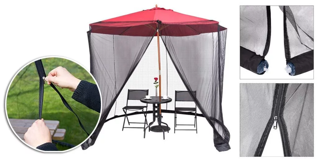 Nem szükséges többé fáklyákat, spray-ket vagy füstölőket használni – csak rögzítsd a hálót a napernyőhöz, cipzározd be, és élvezd a természetet anélkül, hogy rovarok zavarnának.