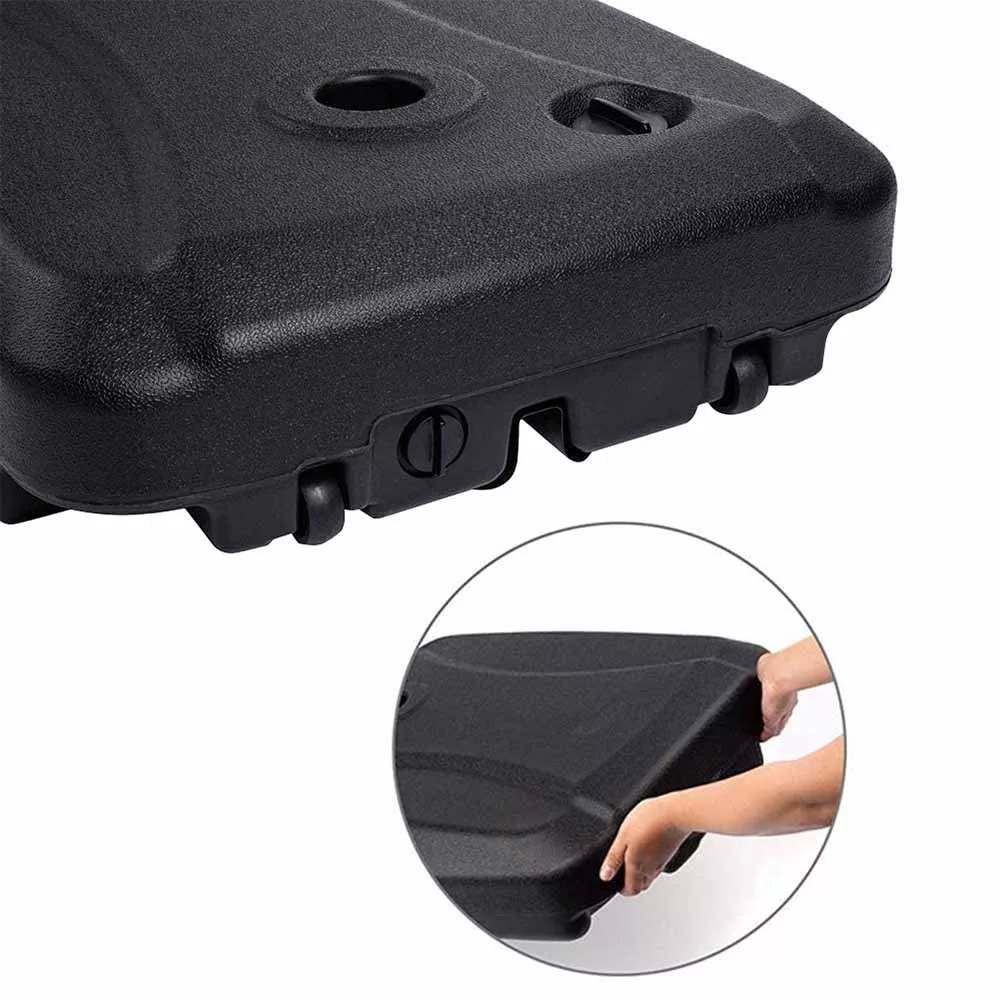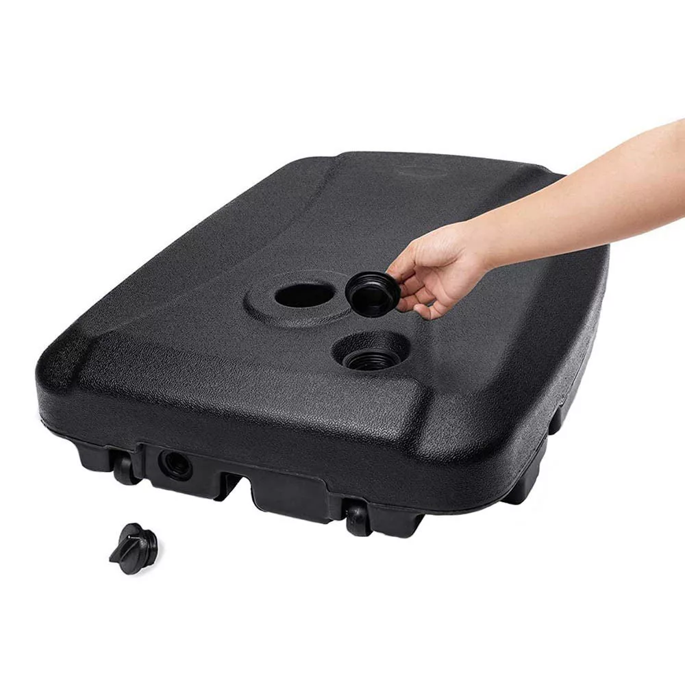 A könnyű műanyag szerkezet üresen egyszerűen hordozható és tárolható, de vízzel vagy homokkal feltöltve nagy stabilitást nyújt. A változtatható súlynak köszönhetően testre szabható, hogy az adott környezethez és ernyőtípushoz igazodjon.