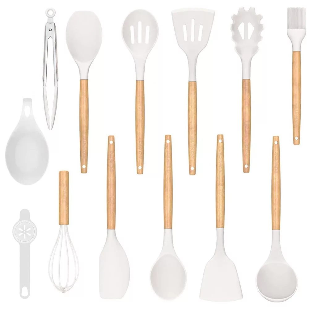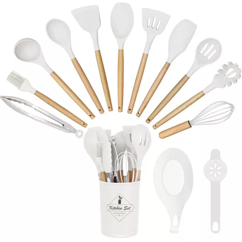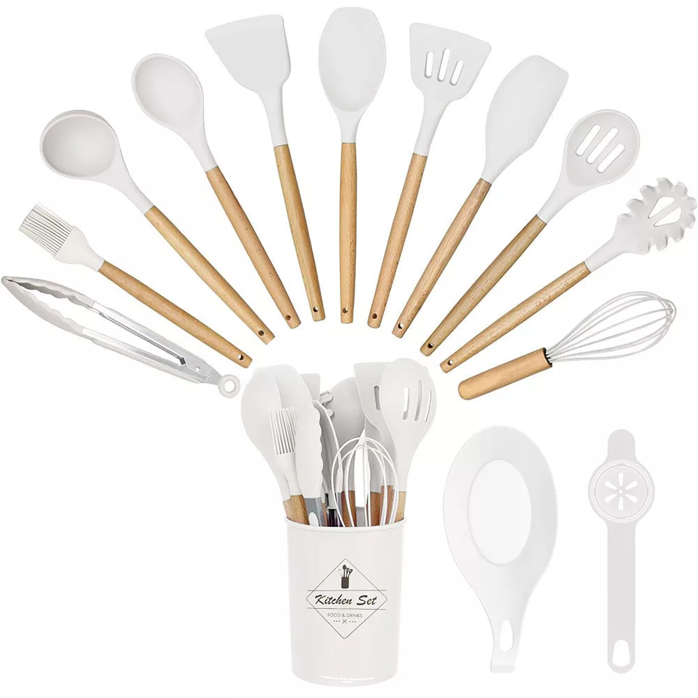 Timeless Gourmet 14 darabos konyhai eszközkészlet, hőálló szilikon fejjel, tartóval, fehér (HOP1001658-1)