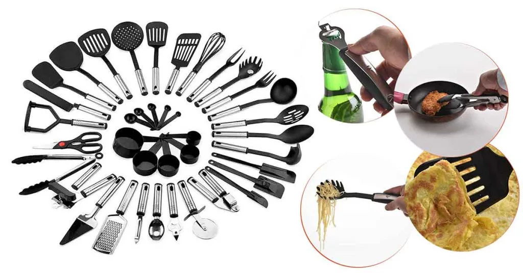 A 39 részes szett tökéletes társ kezdőknek és haladóknak egyaránt. A szett tartalmaz mindent, amire szükséged van az új receptek kipróbálásához, beleértve a lapátkanalat, habverőt, spagetti kanalat, mérőkanalakat, pizzavágót és még sok más eszközt. Az eszközöket nemcsak főzéshez és sütéshez, hanem tálaláshoz is használhatod.