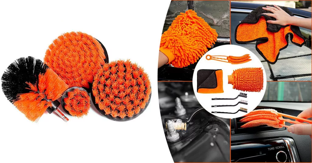A készletben található forgókefék és tisztító ecsetek lehetővé teszik a nehezen elérhető helyek, például a szellőzők, kerekek vagy belső sarkok tisztítását. Az ecsetek különböző méretűek és puha szálúak, így finoman tisztítják a kényes felületeket anélkül, hogy kárt tennének bennük. A forgókefék gyors és hatékony megoldást kínálnak a makacs szennyeződések eltávolítására.