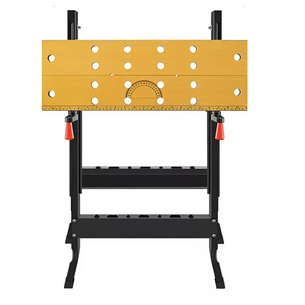 Az összecsukható szerkezetnek köszönhetően a munkaasztalt könnyedén elteheted a munka végeztével. Kompakt mérete ellenére stabil és 100 kg-ig terhelhető, így kisebb gépekkel vagy kéziszerszámokkal is biztonságosan használható.