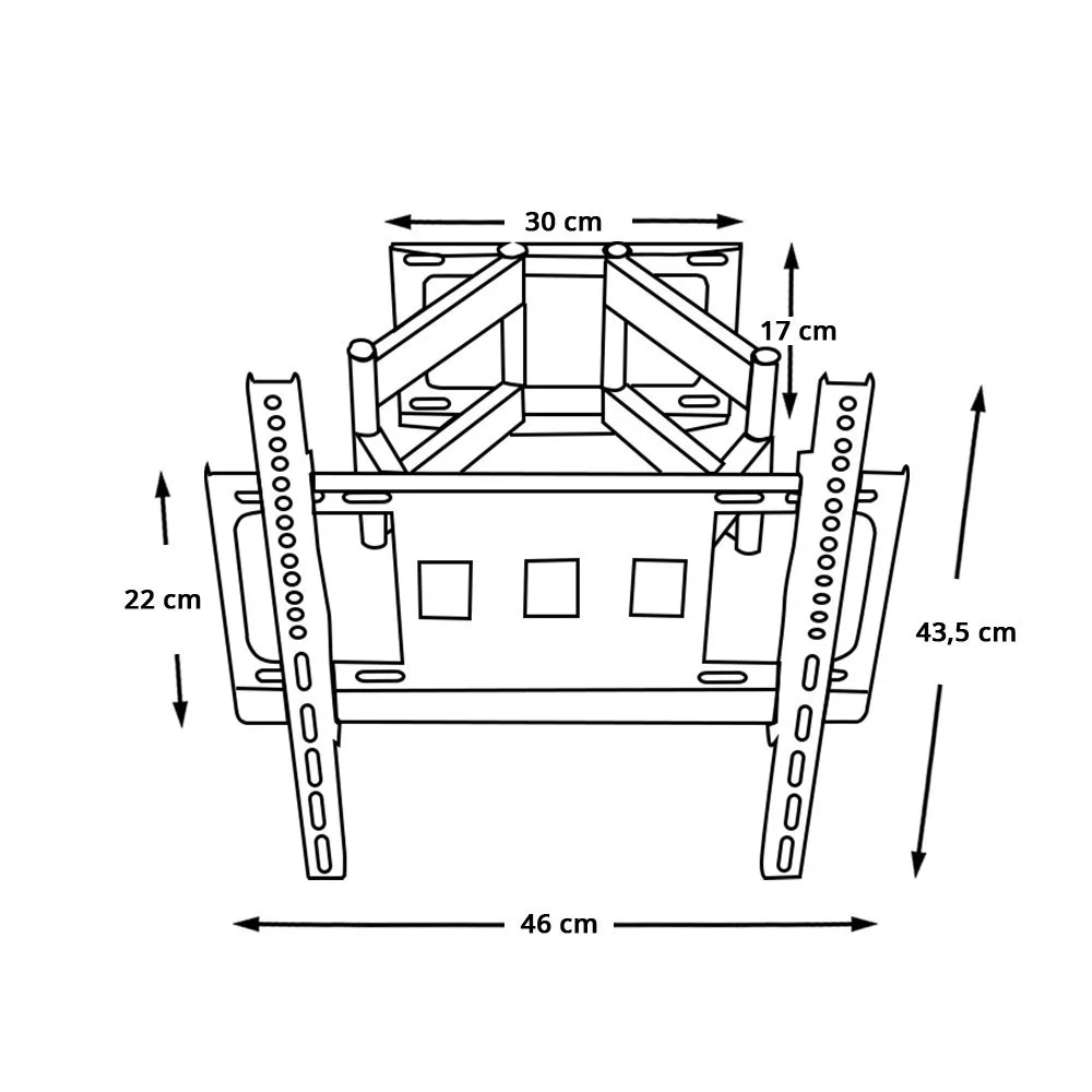 A masszív acélszerkezet biztosítja a stabilitást, de fontos, hogy a konzolt megfelelő teherbírású felületre szereld fel. Gyengébb falakhoz nem ajánlott a használata. Az összecsukott állapotban helytakarékos, mindössze 6 cm mély kialakítású, míg a teljesen kihúzott helyzetben 43 cm mélységet ér el, így a falhoz közelebb vagy távolabb is rögzítheted.