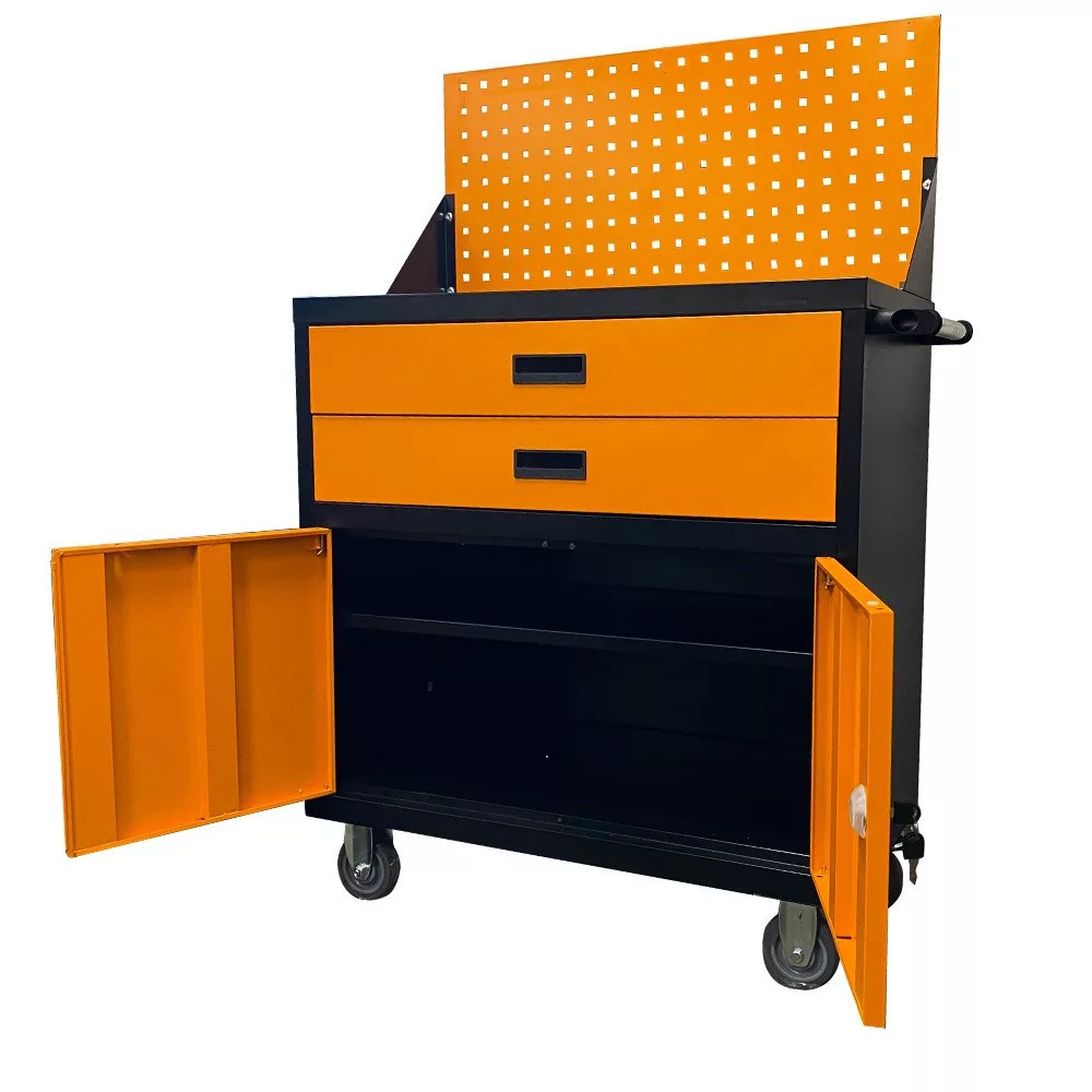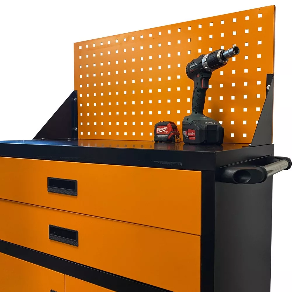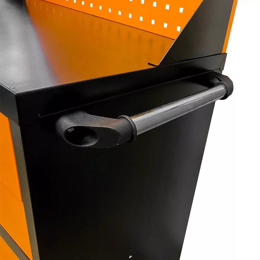 A gurulós műhelykocsi minden barkácsoló és szakember számára ideális választás, aki rendszerezett és könnyen hozzáférhető szerszámtárolót keres. Strapabíró acélszerkezete, tágas fiókjai és állítható polca biztosítja, hogy minden szükséges eszköz kéznél legyen. A masszív kerekekkel és ergonomikus fogantyúval ellátott kialakítás révén a műhelykocsi könnyedén mozgatható, így tökéletes műhelyekbe, garázsokba és szerelőműhelyekbe egyaránt.