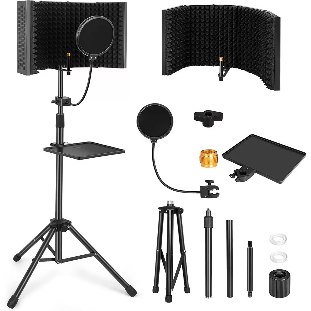Professzionális mikrofonállvány beépített akusztikai zajszűrővel, amely ideális podcasthez, otthoni stúdióhoz vagy hangfelvételekhez. Állítható magasságának (max. 180 cm) és tartozékaival együtt tökéletes választás minden szinten alkotó számára. A beépített pop-filter és akusztikai szivacsok gondoskodnak a kristálytiszta hangzásról. A mikrofon nem tartozék, a szett minden egyéb szükséges elemet tartalmaz a stabil és profi rögzítéshez.