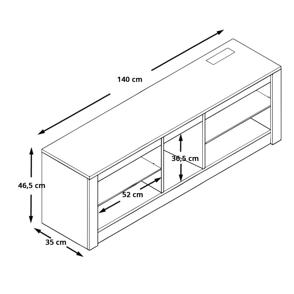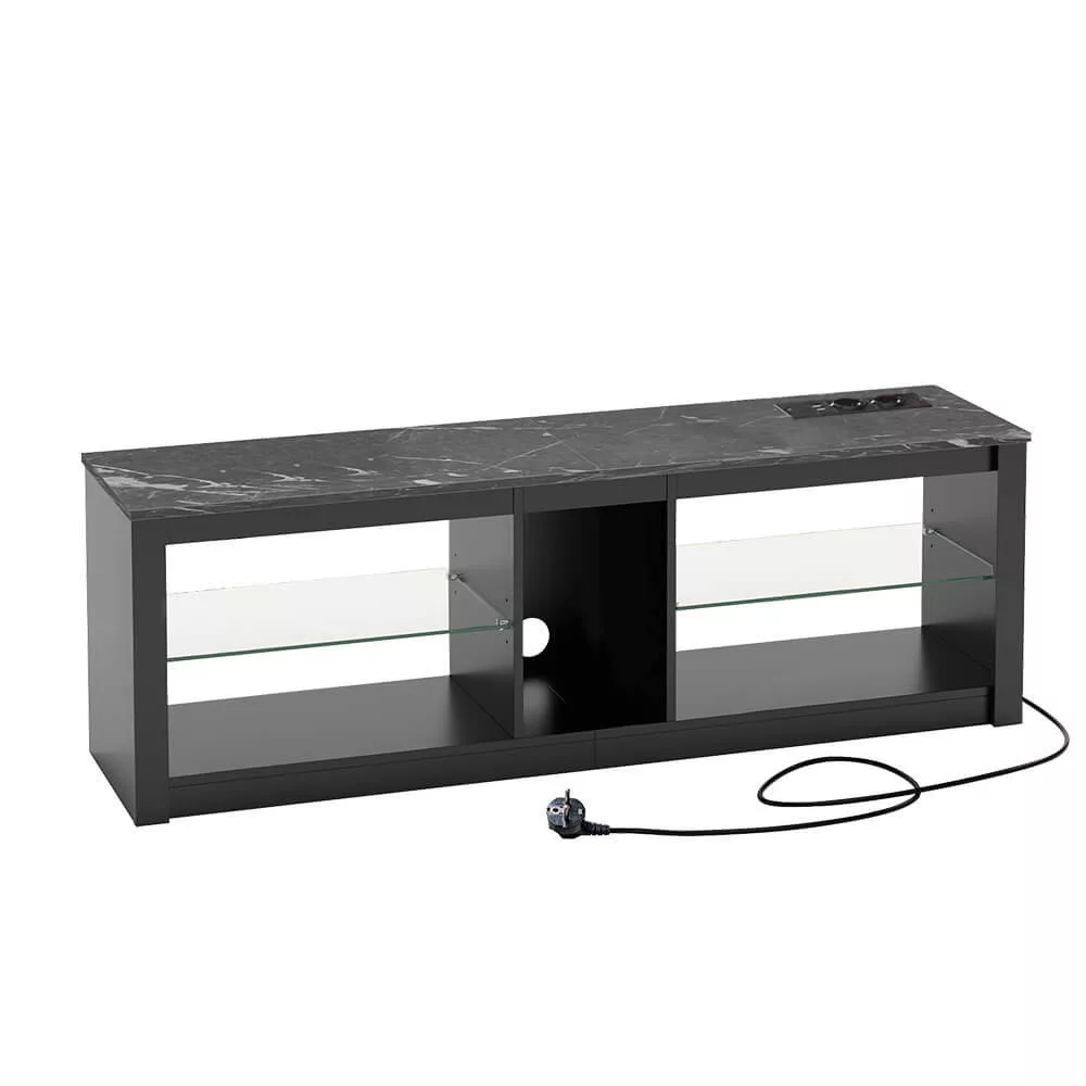 A polcos kialakítású állvány rengeteg helyet kínál a médiaeszközök, távirányítók, játékkonzolok és egyéb kiegészítők számára. Az állvány középső és alsó tárolóhelyei lehetővé teszik a rendszerezett tárolást, míg a beépített konnektorok és USB 2.0 csatlakozók egyszerűvé teszik az eszközök töltését és csatlakoztatását.