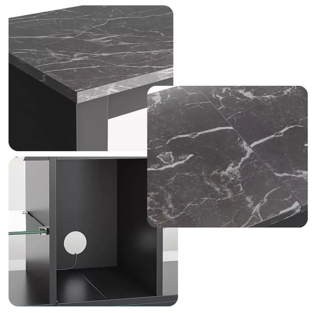 A TV állvány beépített LED világítása hangulatos, egyedi atmoszférát teremt a nappaliban, miközben kiemeli a modern belsőépítészeti stílust. A fény erőssége ideális a szórakoztató élmény fokozására, így a kedvenc műsorai vagy filmjei még élvezetesebbé válnak.