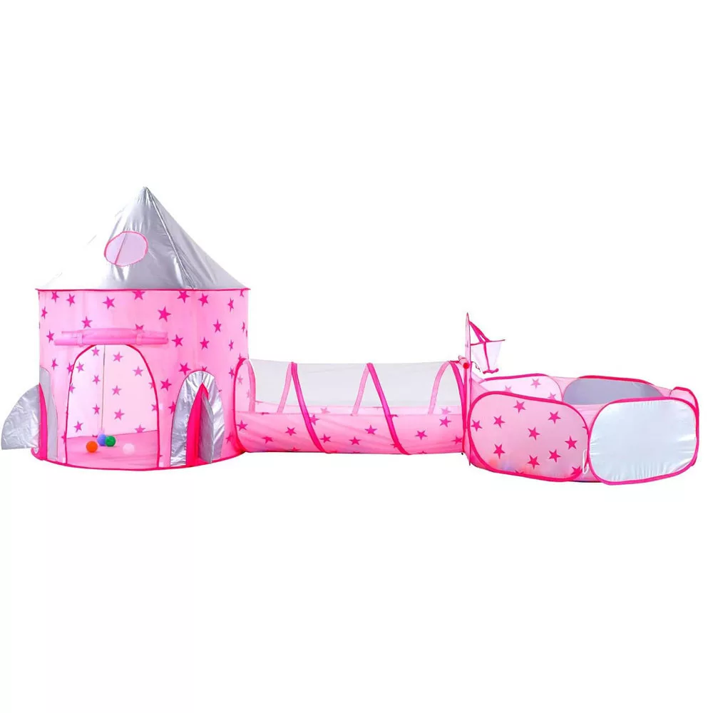 Ez a 3 az 1-ben gyerek játszósátor alagúttal igazi élményközpont a gyerekszobában. A két különálló sátor és az átlátszó alagút izgalmas bújócskázásra, mászásra és labdázásra is lehetőséget ad. Kosárhálóval felszerelt, könnyű szerkezetű és 3 éves kortól ajánlott.