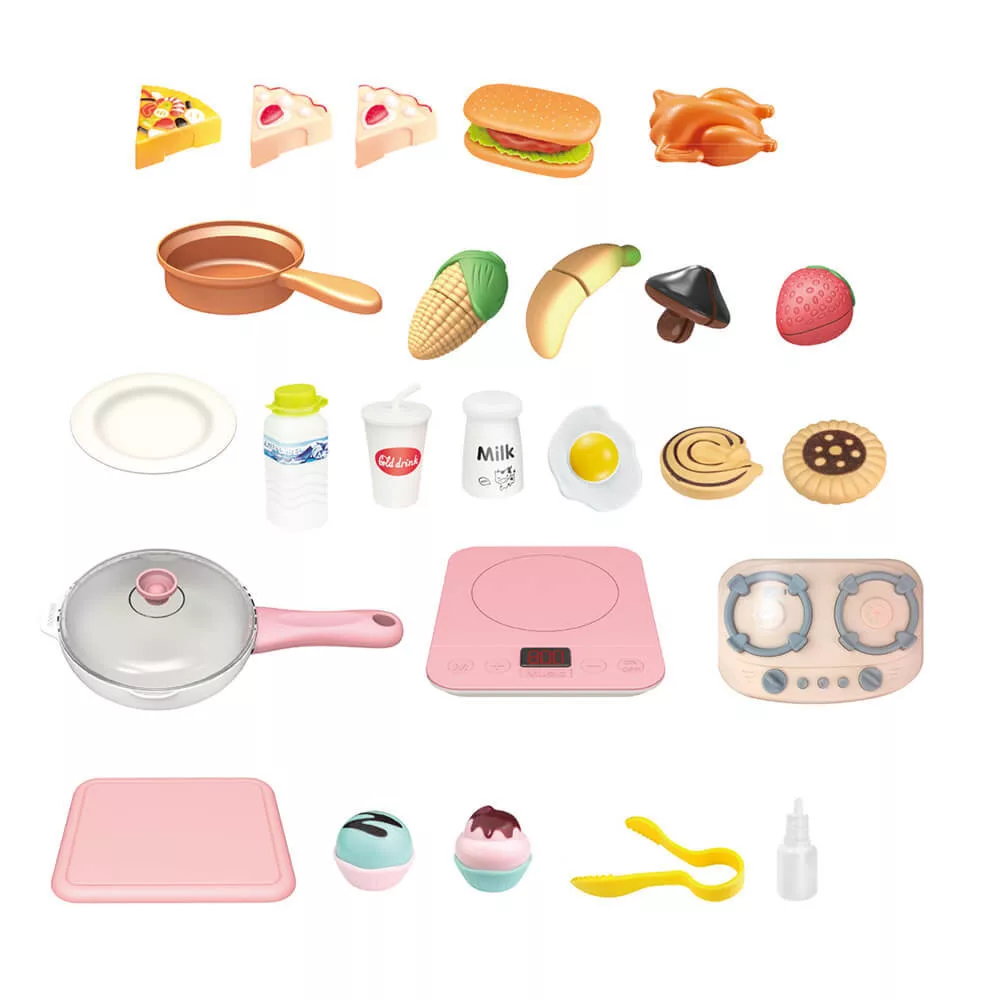 A játékkonyha számos tartozékkal érkezik, beleértve edényeket, evőeszközöket, alapanyagokat és különböző konyhai eszközöket. Ezekkel a gyerekek új recepteket találhatnak ki, és fantáziadús fogásokat készíthetnek el játék közben.