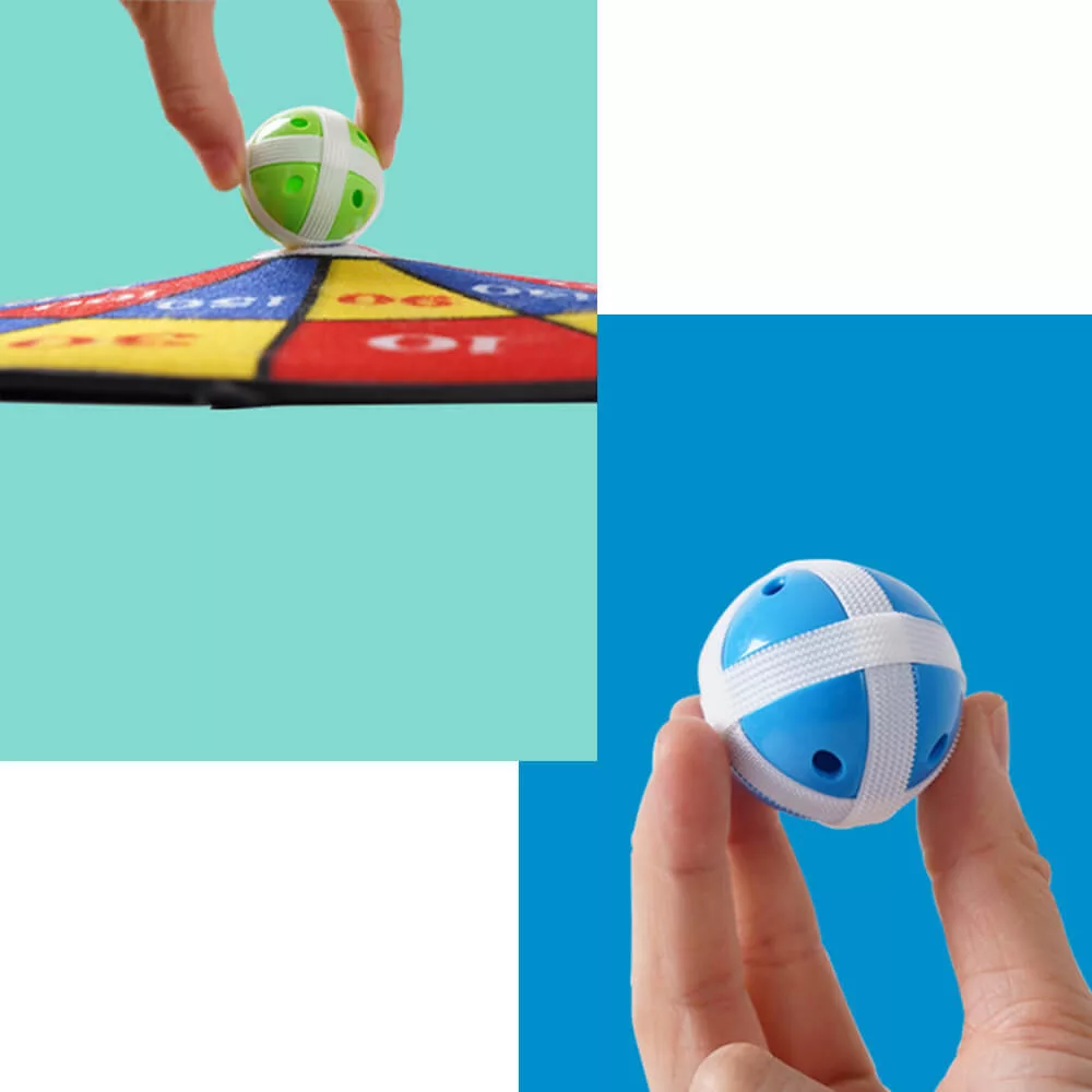 A csomagban 12 db öntapadós labda található, így többen is egyszerre játszhatnak. Versenyezzetek, számoljátok a pontokat és élvezzétek a közös játék örömét! Ideális választás családi estékhez, születésnapi bulikhoz vagy akár irodai kikapcsolódáshoz.