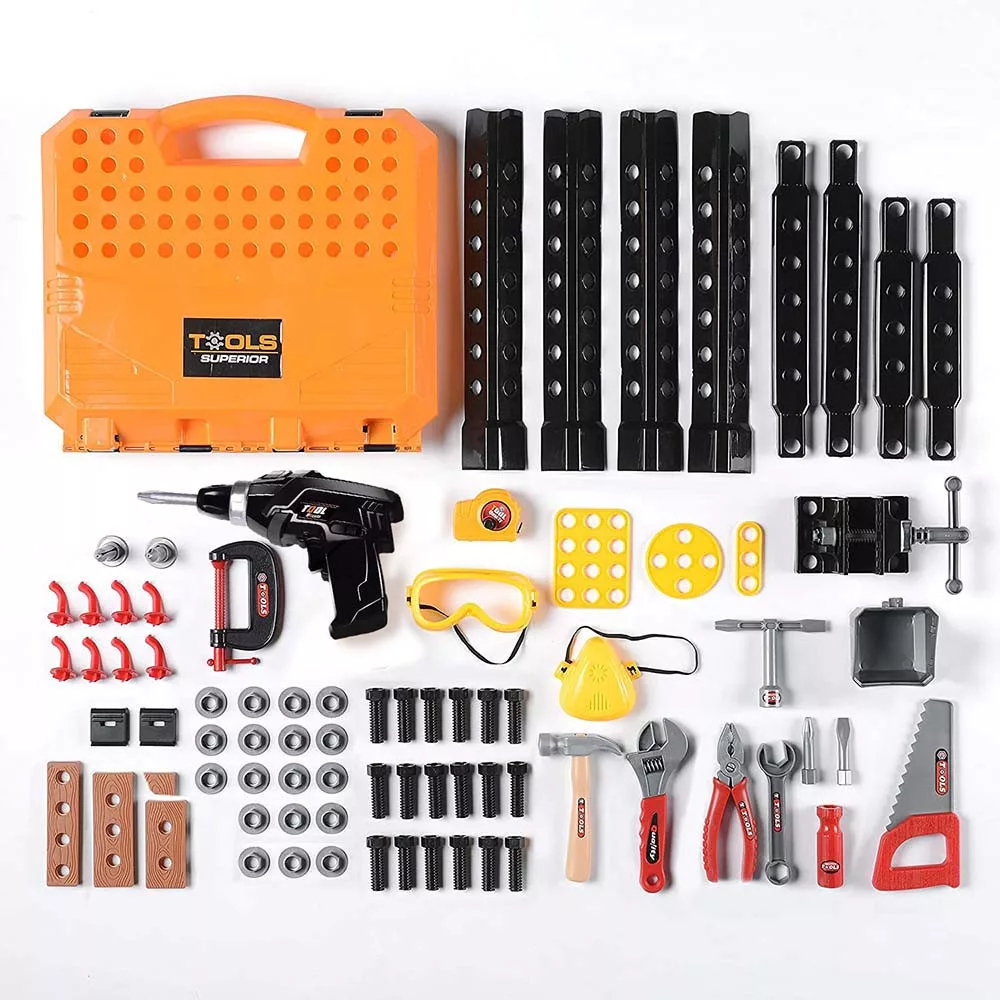 Ez a szerszám asztal tökéletes választás minden gyermek számára, aki szívesen utánozza a felnőtteket barkácsolás közben. A 100 darabos készletben minden megtalálható, amire egy igazi ezermesternek szüksége lehet, legyen az kalapács, csavarhúzó vagy játék csavar.