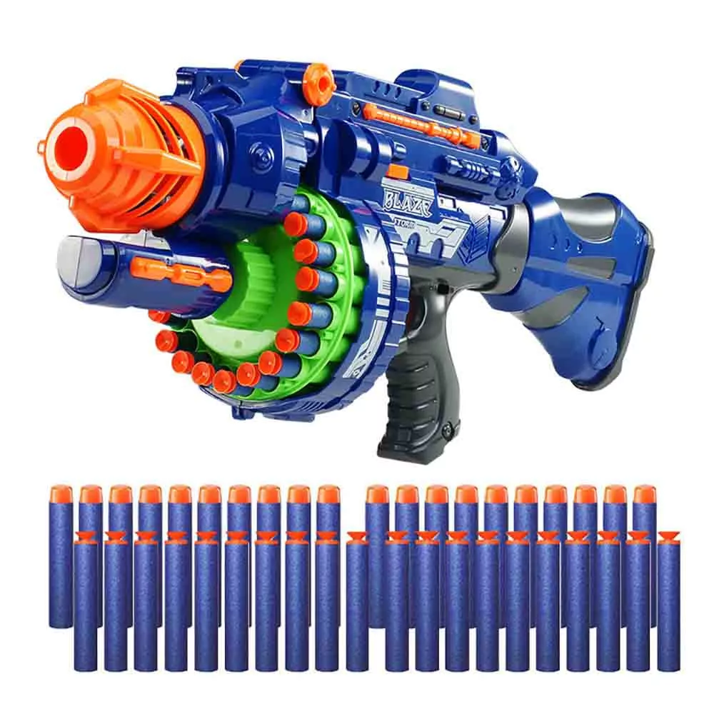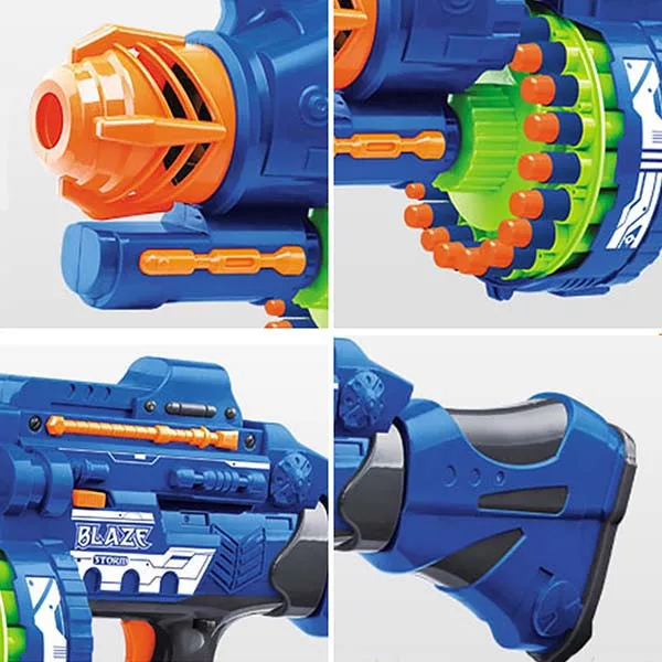 Éld át a csatatér izgalmait ezzel a hatalmas, 56 cm-es játékfegyverrel, amely valósághű hanghatásokkal teszi még élvezetesebbé a játékot! A 20 töltényes forgótár gyors és dinamikus lövöldözést biztosít, miközben a csomagban összesen 80 lövedék található – 40 db sima és 40 db ajándék tapadókorongos töltény, hogy minden helyzetben megtaláld a tökéletes lövést! A fegyver kék és szürke színben elérhető, így kiválaszthatod a kedvencedet!