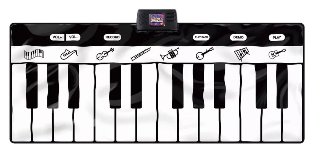 A nyomásérzékelős billentyűk kézzel és lábbal egyaránt működtethetők, így a gyermekek szó szerint táncolhatnak a dallamokon. A nagy méretű szőnyeg (180 x 74 cm) elegendő helyet biztosít arra, hogy egyszerre több gyermek is élvezhesse a zenélés örömét.